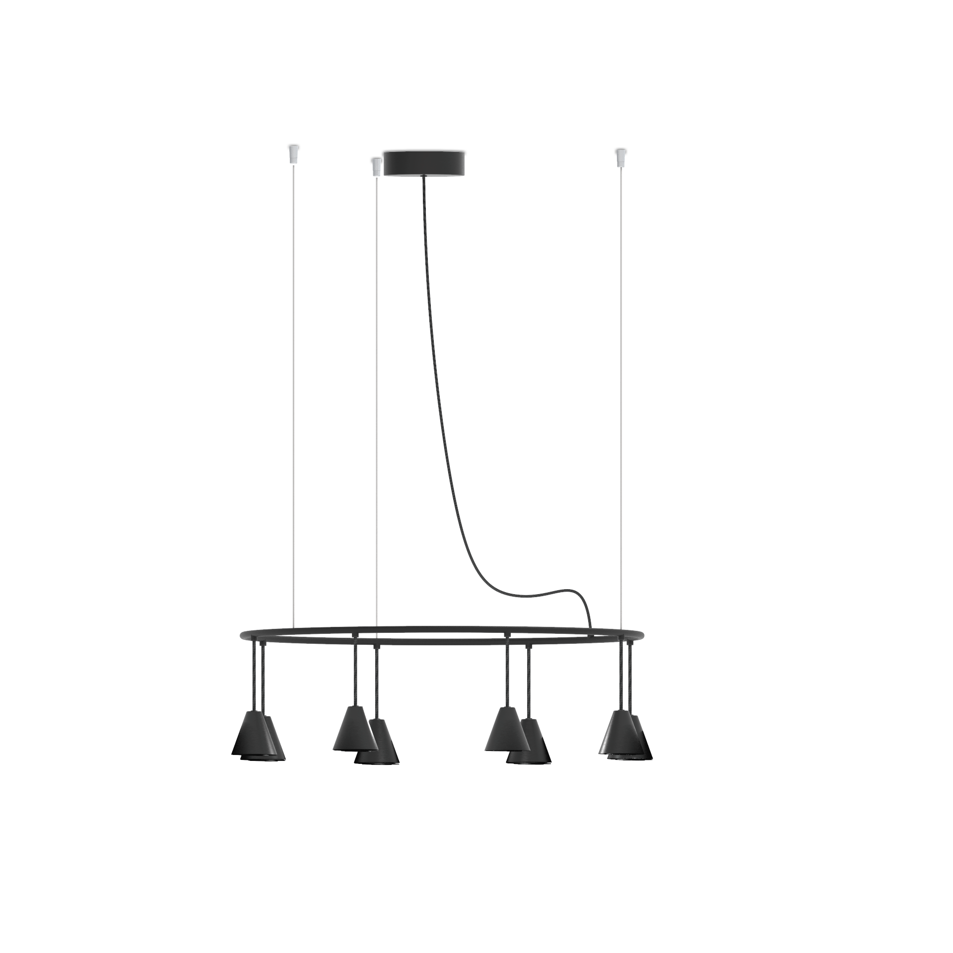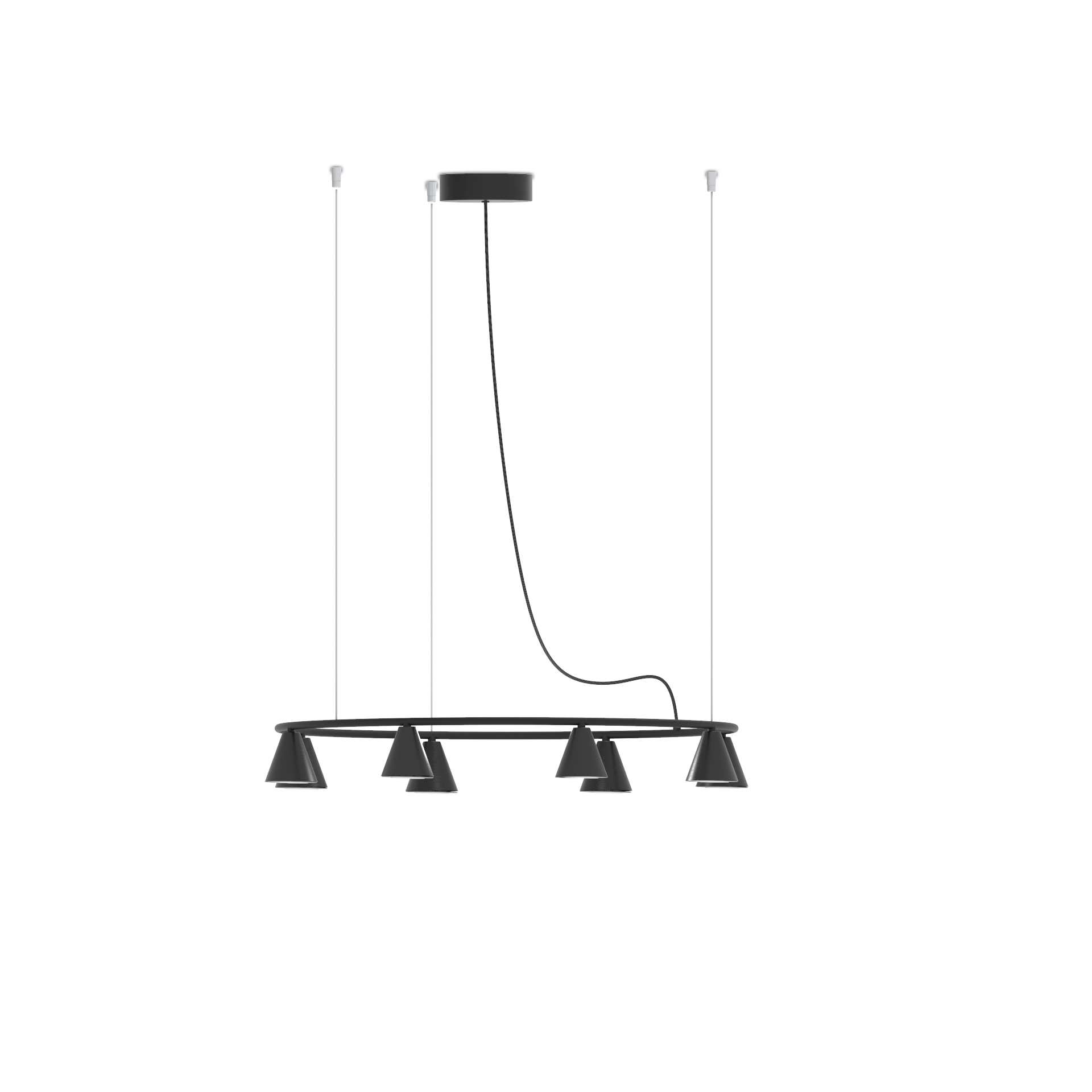 Elevate your interior with the Rimini Pendant Chandelier, a luminaire that orchestrates a captivating dance of light in the embrace of iron elegance. The iron structure, available in a sleek matte black finish, unveils a unique versatility – a linear configuration with five fixed shades or a circular display with eight dynamically hanging or fixed shades. This chandelier transforms your space into a symphony of illumination, all powered by energy-efficient LED technology. Install this chandelier in your foyer, letting it welcome guests with a mesmerizing display or hang it in your lounge, transforming the space into a celestial haven.